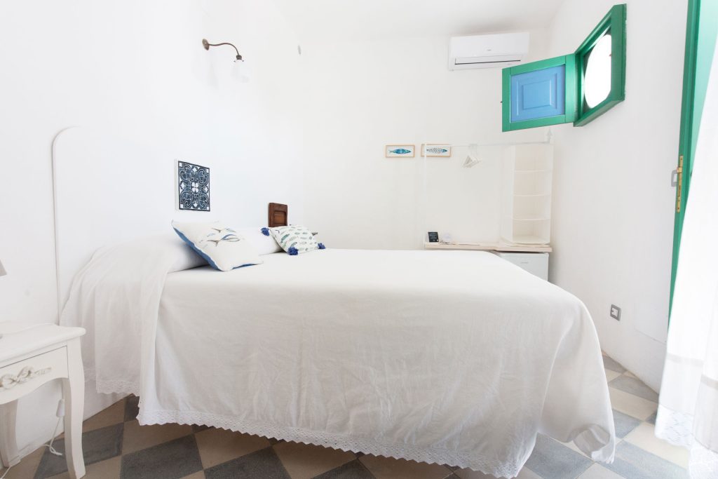 The double bed, the essential but refined furnishings and the shared terrace overlooking the sea create a relaxing atmosphere, ideal for those who want to slow down and rediscover the beauty of simple things.