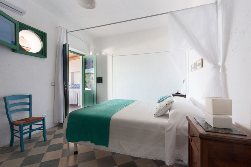 The design is simple and refined, with details that recall the Aeolian tradition. The first room houses an elegant king-size canopy bed, while the second can be set up with a double bed or two single beds, depending on your needs.